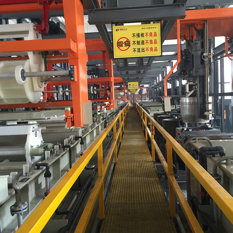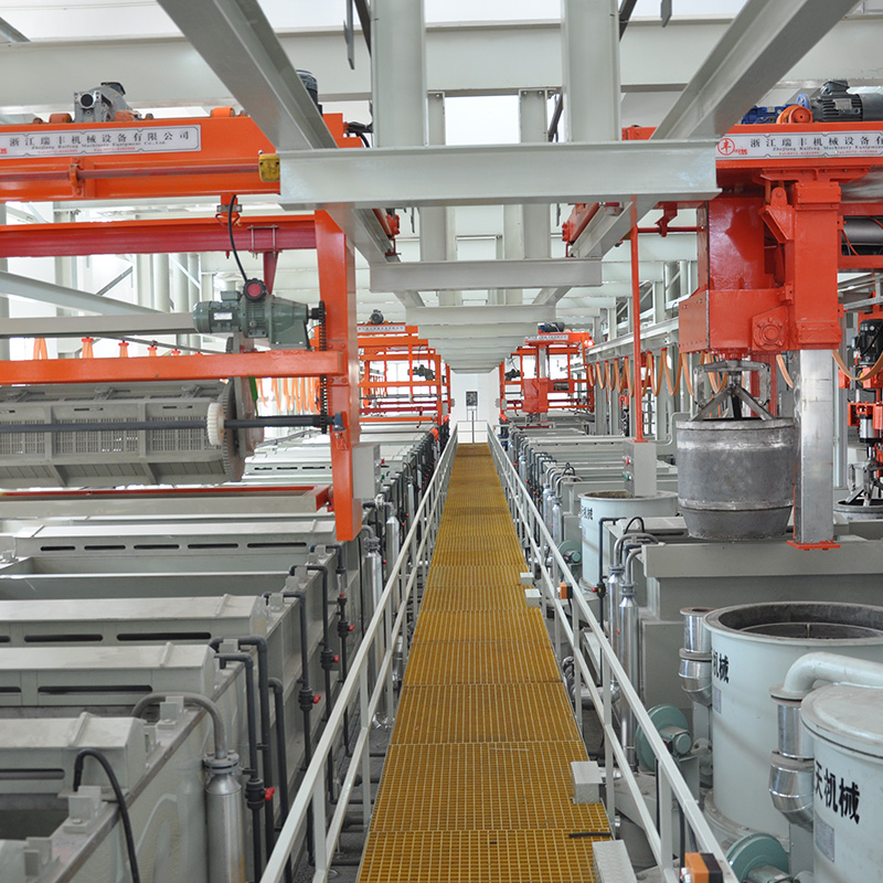 此类自动生产线专用于滚镀锌、锌镍等工艺。生产线由滚筒前处理、滚筒电镀、机械手钝化封闭、篮筐除氢等组成。整条线可实现自动上下料、滚镀、机械手钝化、除氢工艺等智能化全自动。